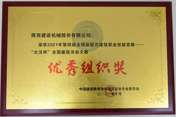 近日,在2021年第四屆全國裝配式建筑職業(yè)技能競賽——“大漢杯”全國建筑吊裝大賽中,陜建機(jī)股份公司獲得全國建設(shè)教育協(xié)會(huì)建筑安全專業(yè)委員會(huì)頒發(fā)的優(yōu)秀組織獎(jiǎng),公司參賽代表隊(duì)員李亮亮獲得個(gè)人第16名的優(yōu)異成績。