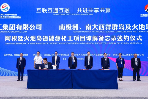 會上,阿根廷駐華大使牛望道及有關(guān)企業(yè)就阿根廷地方政府與陜西省友城結(jié)好及相關(guān)領(lǐng)域務(wù)實合作進(jìn)行推介、西咸新區(qū)就整體項目特別是足球中心與阿合作進(jìn)行交流對接。阿根廷火地島省政府與陜煤集團(tuán)所屬陜西化工集團(tuán)簽署關(guān)于支持在火地島省開展能源化工項目的諒解備忘錄;陜煤集團(tuán)與富海集團(tuán)簽署印尼新絲路產(chǎn)業(yè)園項目框架合作協(xié)議;陜煤集團(tuán)榆林化學(xué)榆東科技有限責(zé)任公司與日本宇高株式會社簽署煤炭分質(zhì)利用制化工新材料示范項目50萬噸/年DMC工程合作協(xié)議。