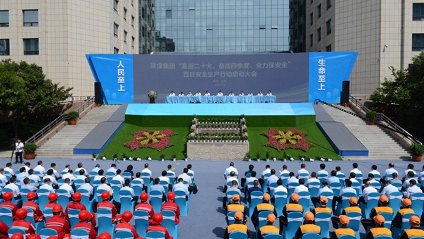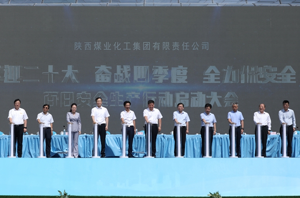 與會領導共同啟動陜煤集團“喜迎二十大、奮戰(zhàn)四季度、全力保安全”百日安全生產(chǎn)大行動。