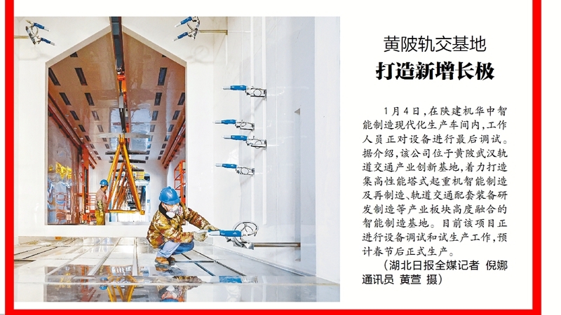 黃陂軌交基地 打造新增長極1月4日,在陜建機華中智能制造現(xiàn)代化生產(chǎn)車間內(nèi),工作人員正對設備進行最后調(diào)試。據(jù)介紹,該公司位于黃陂武漢軌道交通產(chǎn)業(yè)創(chuàng)新基地,著力打造集高性能塔式起重機智能制造及再制造、軌道交通配套裝備研發(fā)制造等產(chǎn)業(yè)板塊高度融合的智能制造基地。目前該項目正進行設備調(diào)試和試生產(chǎn)工作,預計春節(jié)后正式生產(chǎn)。(湖北日報全媒記者 倪娜 通訊員 黃萱 攝)