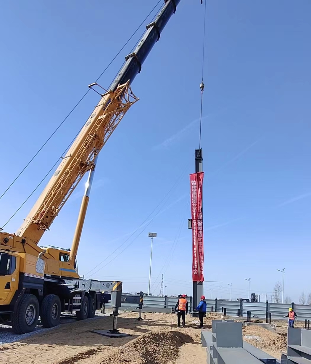 建設(shè)鋼構(gòu)順利完成曹家灘煤礦新建物資棚項(xiàng)目鋼結(jié)構(gòu)工程首根鋼柱吊裝任務(wù)