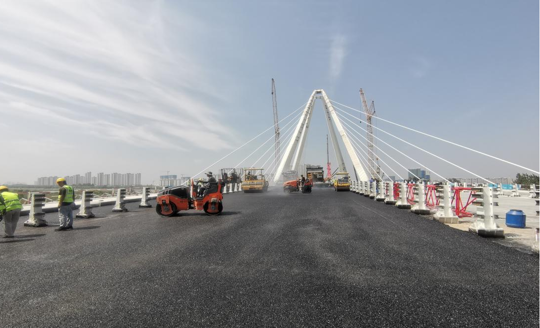 建設(shè)機(jī)械化高質(zhì)量完成咸陽(yáng)高科一路跨渭河大橋路面施工任務(wù)