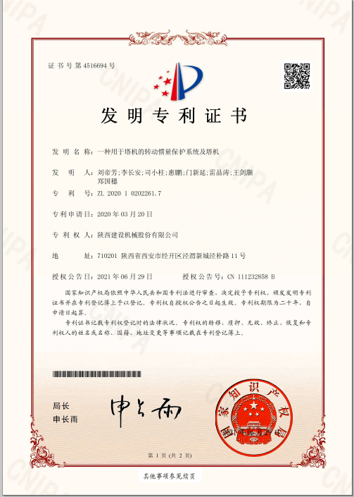 近日,陜建機(jī)股份公司《一種用于塔機(jī)的轉(zhuǎn)動(dòng)慣量保護(hù)系統(tǒng)及塔機(jī)》獲國(guó)家知識(shí)產(chǎn)權(quán)局頒發(fā)的發(fā)明專利證書。作為基建施工過(guò)程中關(guān)鍵的設(shè)備,塔式起重機(jī)的工況直接影響著建筑產(chǎn)品的安全性與可靠性?,F(xiàn)有塔機(jī)在回轉(zhuǎn)控制中,大多數(shù)采用的技術(shù)是通過(guò)在回轉(zhuǎn)過(guò)程中增加渦流系統(tǒng)來(lái)提高回轉(zhuǎn)運(yùn)動(dòng)過(guò)程穩(wěn)定性,以及保護(hù)大臂的作用。這種控制方式無(wú)法反饋,一旦回轉(zhuǎn)機(jī)構(gòu)出現(xiàn)問(wèn)題,則會(huì)導(dǎo)致塔機(jī)在回轉(zhuǎn)過(guò)程中大臂出現(xiàn)較大的頓挫、反彈、甚至對(duì)大臂造成永久性破壞。針對(duì)現(xiàn)有技術(shù)中的技術(shù)問(wèn)題,本發(fā)明提供了一種用于塔機(jī)的轉(zhuǎn)動(dòng)慣量保護(hù)系統(tǒng)及塔機(jī),能夠有效避免...