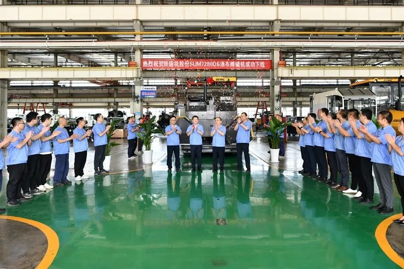 喜報:陜建機股份首臺SUM7280DS灑布攤鋪機成功下線