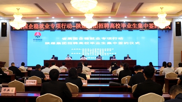 “省屬國(guó)企穩(wěn)就業(yè)專項(xiàng)行動(dòng)——陜煤集團(tuán)招聘高校畢業(yè)生集中簽約儀式”在陜煤集團(tuán)舉行
