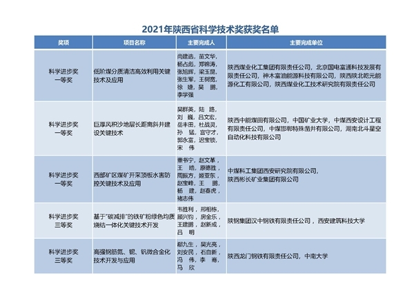 陜煤集團5項科技成果榮獲2021年度陜西省科學技術(shù)獎